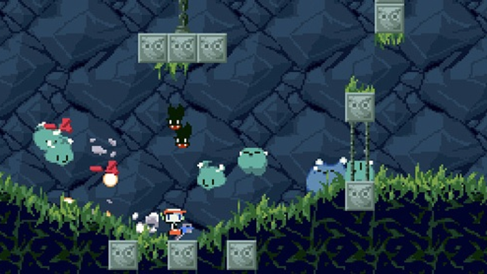 Cave Story, originally created by Daisuke Amaya, is a pixel-art indie platformer that’s heavy on exploration, narrative, and charming characters. You play as Quote, a little robot who wakes up in a mysterious cave filled with bizarre creatures and a gripping story about the Mimiga, a rabbit-like race threatened by a villain named Balrog and his master, the Doctor. As you navigate through the cave, you gather weapons, unlock new abilities, and unravel the secrets of the world, all while interacting with a colorful cast that includes Curly Brace, a fellow robot who’s both endearing and essential to the plot.