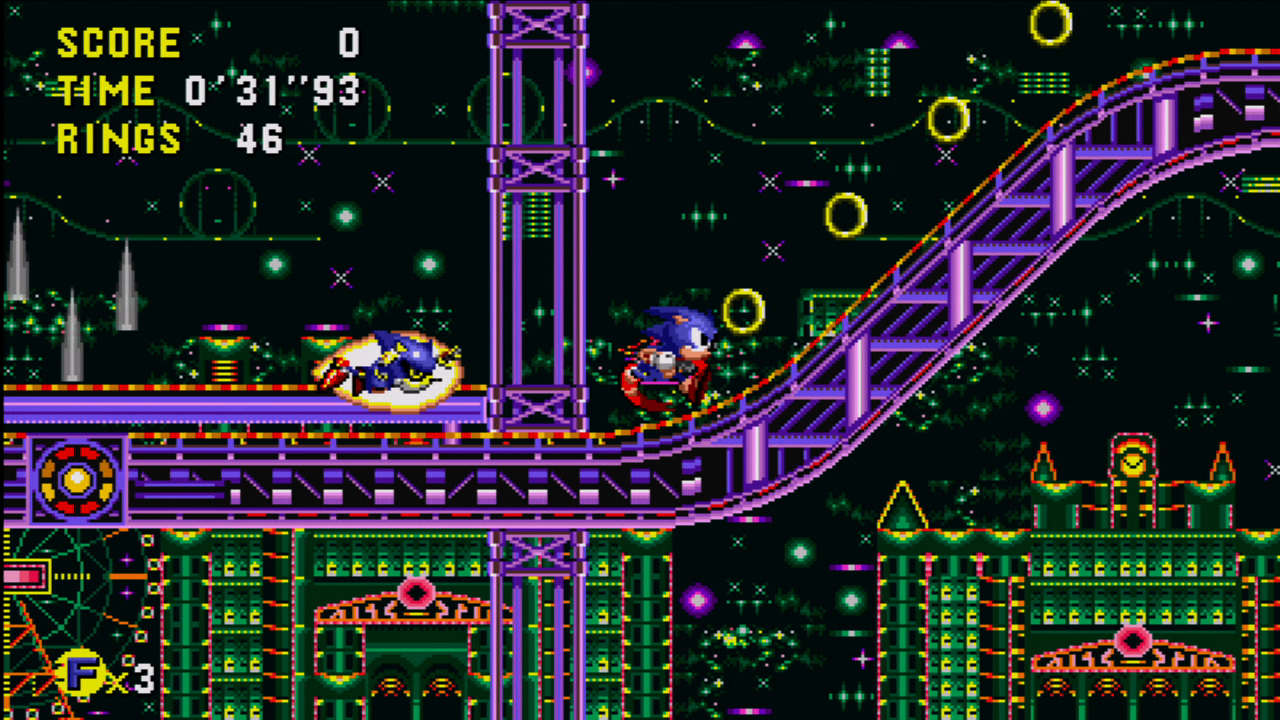 Also, this game got an official 3DS port too, and it's another fantastic way to experience it. You get the crisp clean presentation and you're still able to switch between the Japanese and International ROMs, which is cool for purists. The inclusion of a level select and a Ring Keeper mode (where you only lose half your rings when hit) are genuine blessings for cutting through the frustrating bits. It even keeps the original 2P mode intact via local wireless.