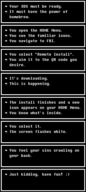 Aside of Project Echo, there's also another project to port it to the 3DS. It's still in its early alpha stages and not much has been done, it has the Flowey encounter working complete with all his creepy animations during the dodge sequences and some maps of the Ruins, so it's far from finished, any other battles aren't in yet and borders are disabled, but it's built with such care for performance and faithfulness to the original that it'll probably the definitive way to play on the go once it's finished.